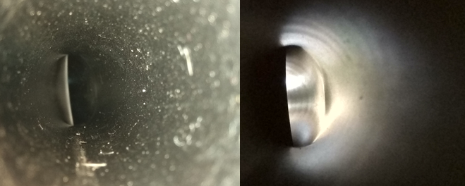 Above shows the ‘Dee’-shaped cross section of the pipe – clearer in the back-lit pic on the right – which forms as it is bent against the fulcrum post. The Dee narrows as the angle of bend increases, decreases the flow. The pipe is 32mm bore, 1.5mm wall thickness polypropylene. We think that we’ve uncovered ways of making this more usable which still needs some more work… more coming soon !