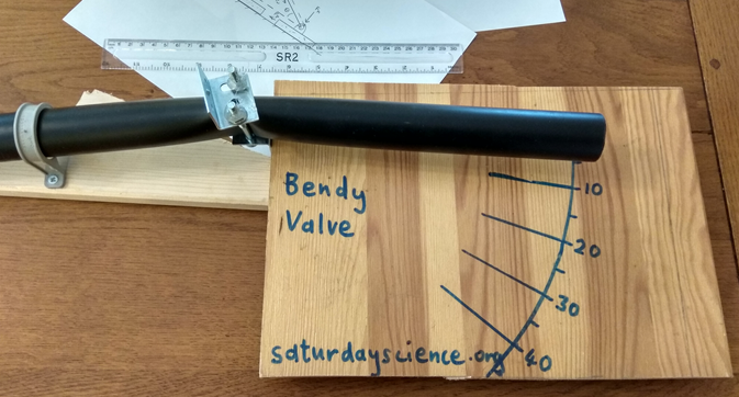 Simply squeezing the tube works fine with ultra-flexible PVC tubing of relatively small diameter. But you can also get great flow control of bigger, nominally rigid pipe, leastways reasonably thin-walled slightly flexible pipe polypropylene pipe by bending it. You can monitor the control you are getting by looking at the angle of the bend. And it has the advantage of needing no equipment other than Mk I Human Hands. We’ve used this for a while now to control the flow of air to a vacuum cleaner in vacuum-based projects. But the the pipe is really difficult to bend at first, then – OOoops ! – it bends down flat and nearly shuts off the vacuum cleaner.