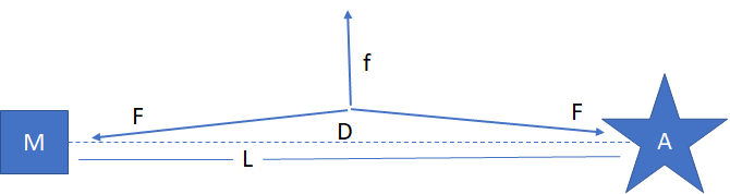 Now suppose you tie the rope off on fixed point A and then wrap it around M. Maybe A is a heavy gauge anchor point in the wall. Make sure that the rope is pulled tight. Perhaps an assistant can hold the end of the rope to stop it slipping around M. Now pull on the mid-point of the free length of rope. A surprisingly small force, just a couple of hundred N, ten or twenty kg f, and the piano M will shift a little. But it doesn’t move too far. So if your assistant simply pulls the wrap on M tight again, you can repeat the exercise.