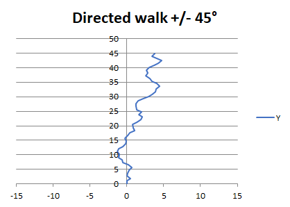 It often happens that something that you don’t fully understand, or can’t do the maths for, can be analyzed by the curious approach of simulating it, using random numbers as input, and then looking at the results and comparing to experiments. This is, in essence, what the Monte Carlo Method is about. Take, for example, navigation using a compass at sea. How good does a compass need to be, to go efficiently from A to B, if we assume that B is a long coastline where it doesn’t matter too much where you make landfall. Here is a graph I came up with for the light-polarization-based ‘Viking compass’. It plots the slightly drunken wandering of a boat with a compass that varies randomly from -45 to +45 degrees from its course. Even with such a bad compass, as this plot shows, you can still get places ! (see Optical Realities on this website).